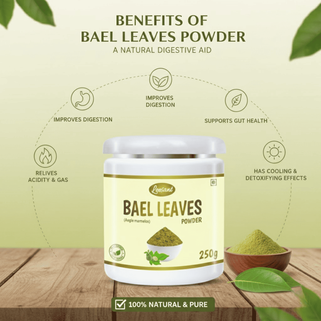 Bael leaves possess natural antimicrobial and anti-inflammatory properties that help the body fight infections and reduce inflammation. These benefits also extend to skin and scalp health, where bael powder can help address dandruff, itching, and various skin infections.