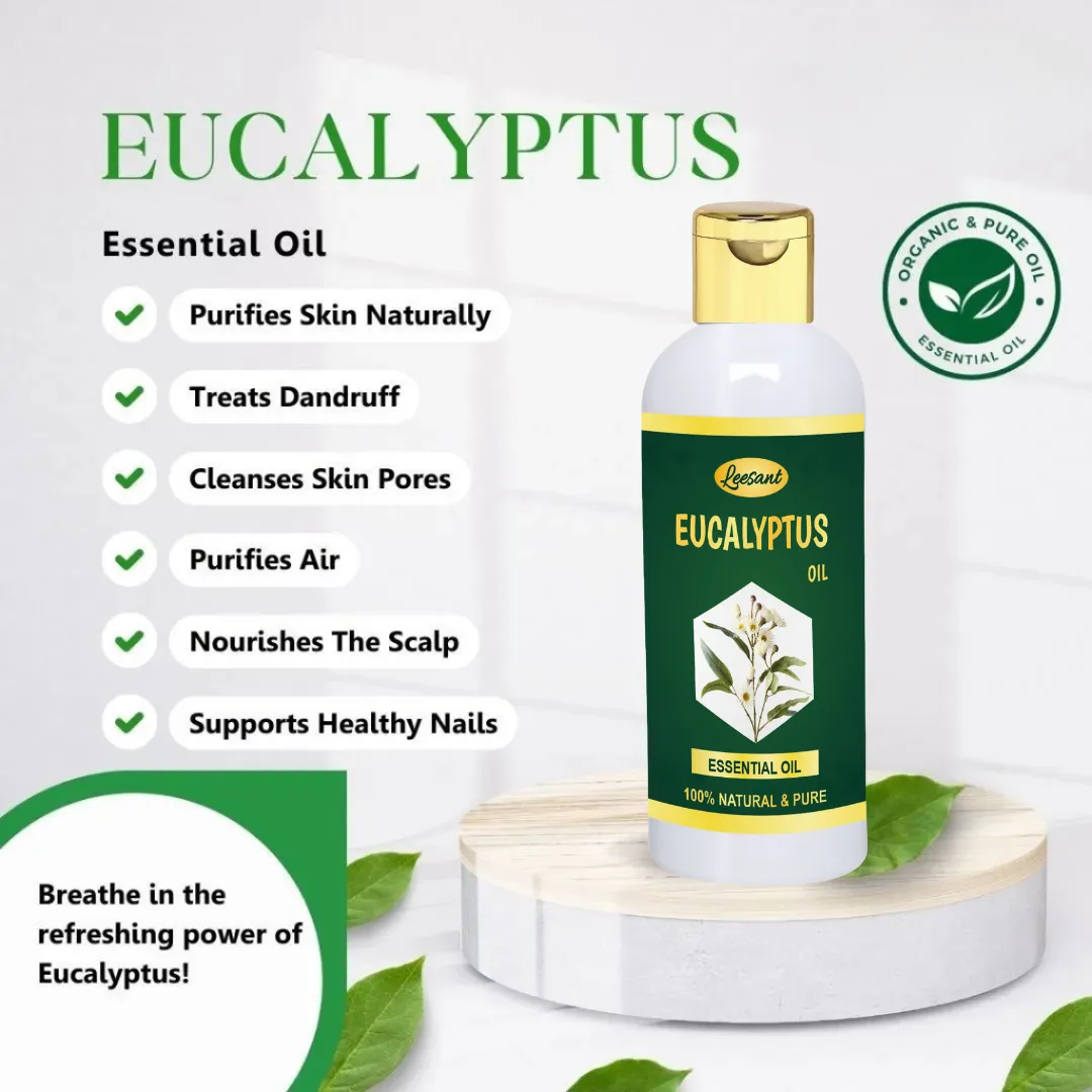 Eucalyptus oil offers numerous benefits, primarily due to its active compound 1,8-cineole (eucalyptol), which has anti-inflammatory, analgesic, and decongestant properties.