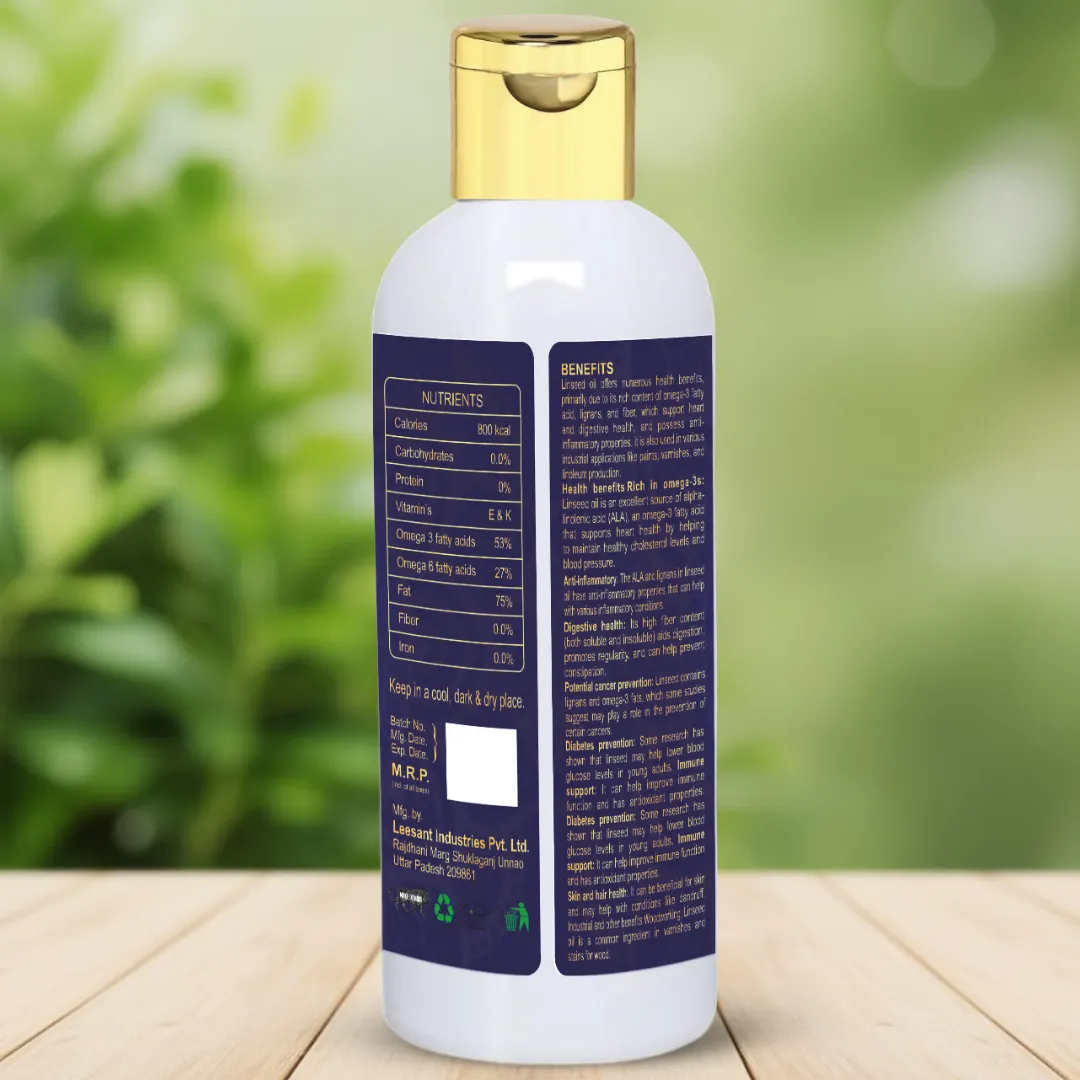 • Rich in Omega-3s: Linseed oil is an excellent source of alpha-linolenic acid (ALA), an omega-3 fatty acid that supports heart health by helping to maintain healthy cholesterol levels and blood pressure.