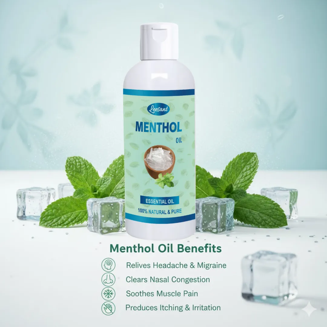 • Skin and hair care: Menthol oil can soothe itchy skin, and increased blood flow from topical application may help stimulate the scalp for hair growth.