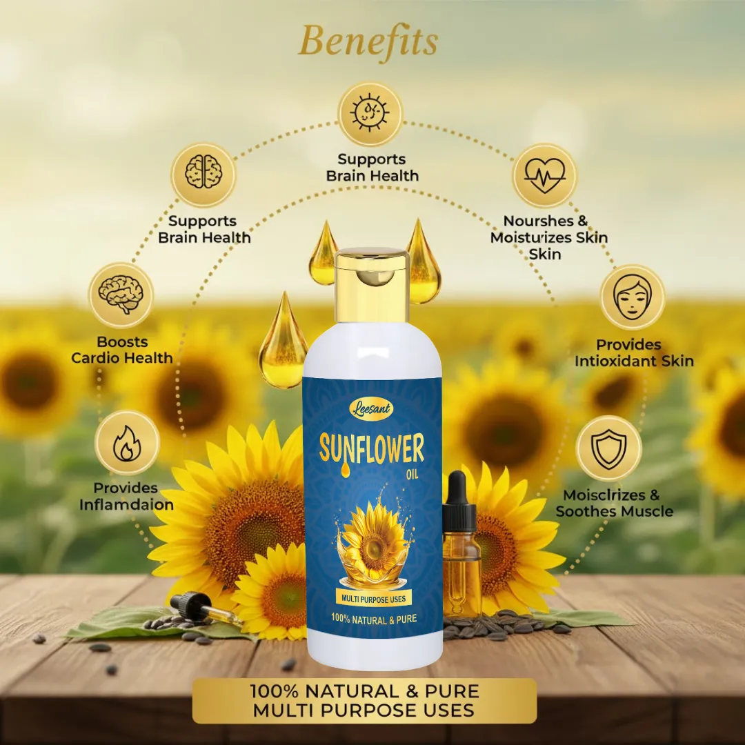 Sunflower oil has benefits for heart health, skin, and the immune system due to its high content of vitamin E and unsaturated fats. It can help manage cholesterol levels, protect skin from damage, support immune function, and has anti-inflammatory properties that may help with conditions like arthritis.
